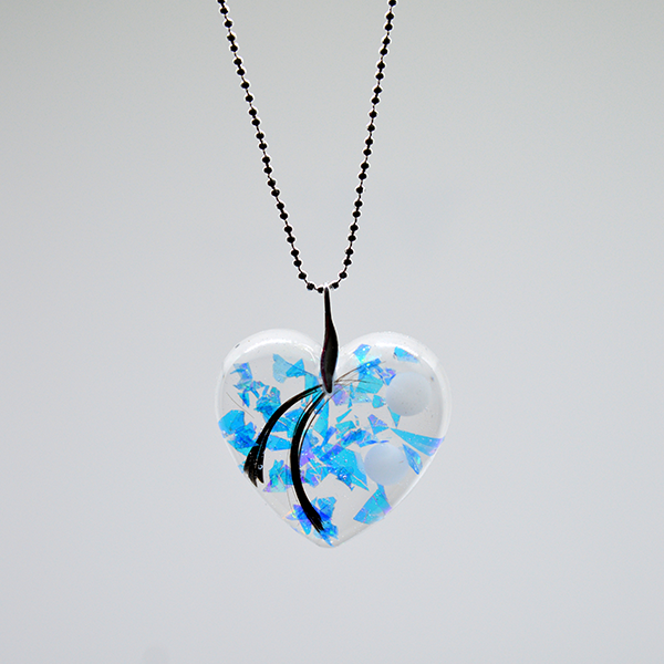 Un coeur transparent avec une mèche de cheveux de vos enfants.