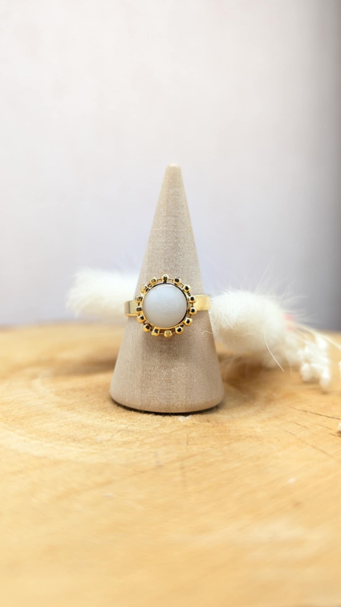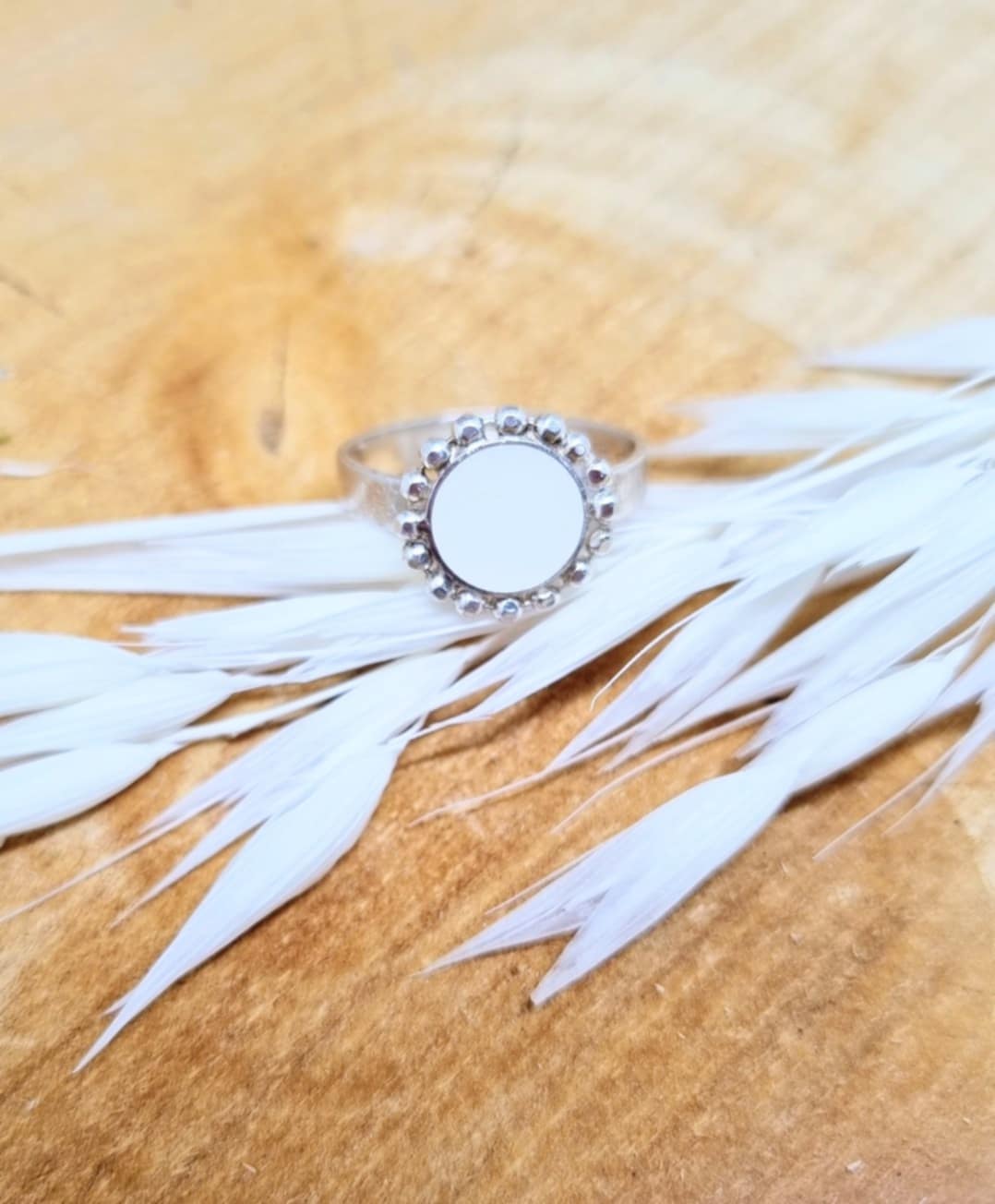 Cette magnifique bague en laiton doré à l’or fin 24k transforme vos souvenirs les plus tendres en bijou d’exception. Sa partie lactée de 8mm de diamètre accueille délicatement :