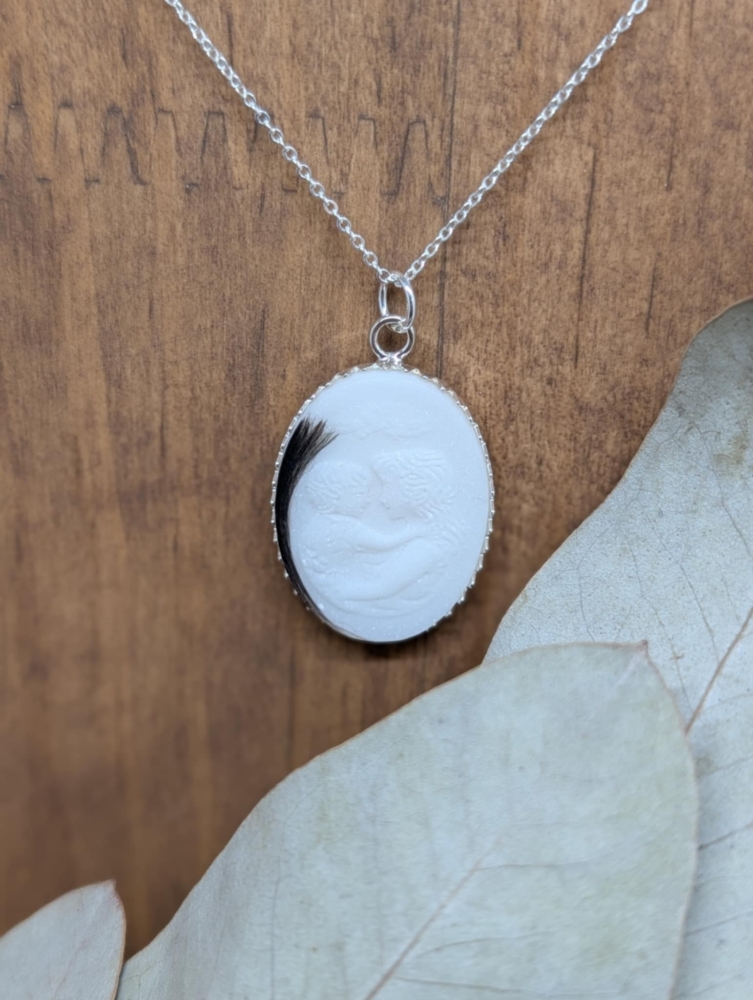 Un camé sur un médaillon serti en argent 925 de 25 * 18 mm.
